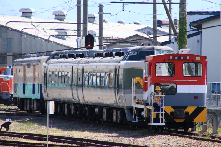 189系先頭車+クモユニ143-1が工場へ