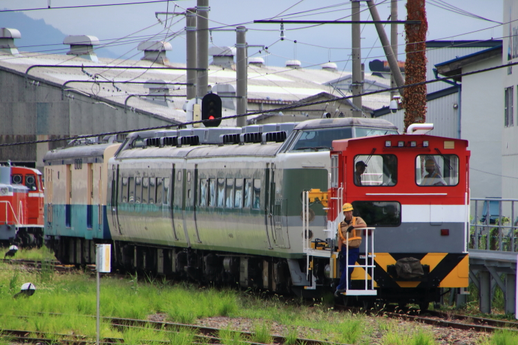 189系先頭車+クモユニ143-1が工場へ