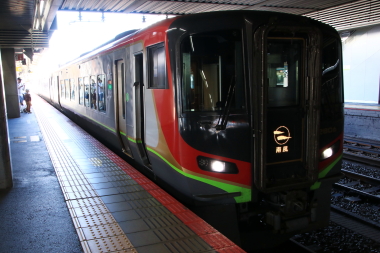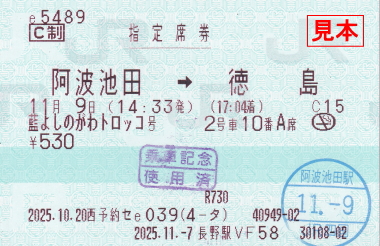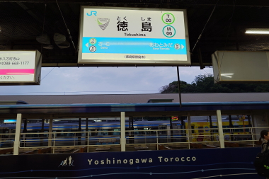 石井駅からは控え車のキハ185系に移動します。こちらも指定券に記載された席番と同じ席を利用します。トロッコとキハ185系の2種類の乗車を楽しめるおいしい列車です。石井からはトロッコ車は閉鎖されているので列車は快調に進み夕暮れの徳島に到着します。