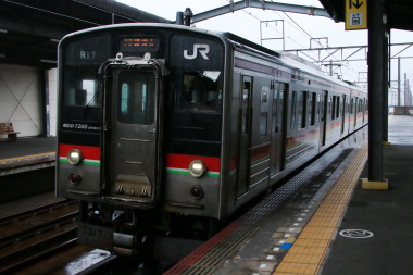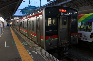 貞光駅で少々停車したのでホームへ降りて休憩します。貞光駅を出るともともと曇りですが徐々に夕暮れとなり寒くなってきます。川田駅を過ぎると吉野川ともお別れです。ガイドの方が、この列車は吉野川の支流の川は渡りますが、吉野川は1度も渡りませんと解説してくれてなるほどと。そう言われればそうでした。いよいよ寒さも限界と言うところで石井駅に到着します。トロッコ車両の乗車は石井駅までです。良く寒さに耐え抜いた。