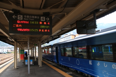 阿波池田駅から徳島線を吉野川に沿って走る観光列車「藍よしのがわトロッコ」に乗車しました。四国まんなか千年ものがたり号を大歩危で降りて普通列車で阿波池田に移動するとこちらのトロッコ列車にも乗車できます。