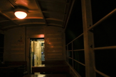 貞光駅を出て貞光川を渡ると徐々に夕暮れとなり寒くなってきます。沿線では地元の方々が手を振って見送ってくれます。列車は再び吉野川に沿って進みます。さすがに寒くなってきたので車内販売でコーヒーを購入します。寒い車内でホットコーヒーは本当に温まります。列車は、穴吹川を渡り徳島線唯一の「鼓山トンネル」を過ぎると川田駅を通過して吉野川ともお別れです。ガイドの方が、この列車は吉野川の支流の川は渡りますが、吉野川は1度も渡りませんと解説してくれてなるほどと。そう言われればそうでした。