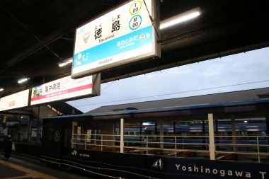 石井駅からは控え車のキハ185系に移動します。こちらも指定券に記載された席番と同じ席を利用します。トロッコとキハ185系の2種類の乗車を楽しめるおいしい列車です。キハ185系のリクライニングシートは懐かしいですね。昔は各地に同じような座席を取り付けた列車が走っていましたが最近はあまり見かけなくなりました。石井からはトロッコ車は閉鎖されているので列車は快調に進み佐古駅から高徳線に入り夕暮れの徳島に到着します。