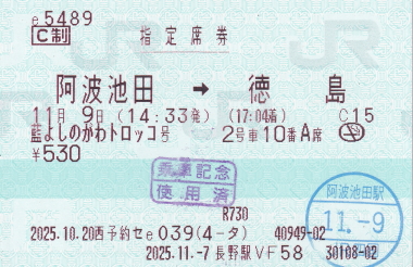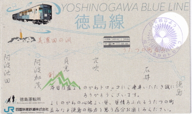 記念品は、徳島運転所からの乗車証とJR四国からの乗車証とスタンプ台紙と沿線マップが兼用された冊子を貰いました。 |