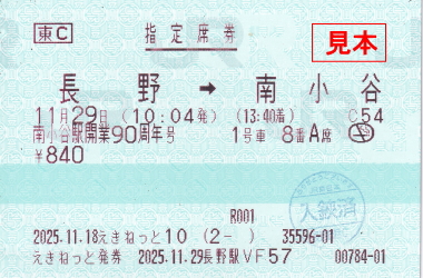 往路(南小谷行)指定券