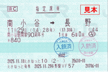 復路(長野行)指定券