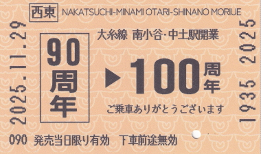 | 大糸線 南小谷−中土開業90周年記念 |