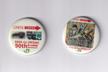 缶バッチ(右:往路・左復路)