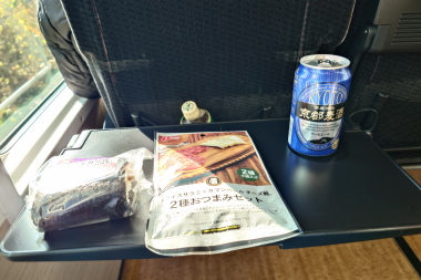発車して早々ですが、さっそくビール片手に列車の旅を楽しみます。ちなみに本日は、快速リゾートビューふるさと号ではありませんので、車掌が乗務するツーマン運転で車内放送もあります。ただ、車内販売がないのが残念です。今日みたいな列車名の違う「リゾートビューふるさと」だと結構儲かるかと思いますが・・・。