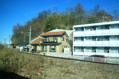列車は、犀川を渡り篠ノ井を出ると篠ノ井線を進みます。沿線で撮影する人は殆ど居ません。列車は、稲荷山を過ぎると徐々に山間部に入り高度を上げてゆき善光寺平の絶景が見えてくるとスイッチバックを行ない姨捨に到着します。