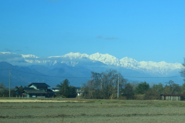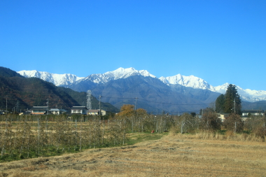 松本から進行方向を変えて元来た道を戻るかのように列車は進みます。松本で乗務員が交代となりましたが、本日は引き続き車掌が乗務して車内販売はありません。列車は棒線化された北松本駅を通過して先ほど走行した篠ノ井線と別れます。奈良井川を渡り島高松を過ぎると梓川を渡ります。今日は秋晴れでアルプスの山々も見えます。梓川を渡ると松本から列車は安曇野に入ります。今年の役目を終えて越冬の準備が整った田園地帯を列車は快調に進み市街地が見えてくると豊科を通過します。豊科を過ぎて私の乗っている側の車窓は田園地帯が続き住宅地が増えてくると穂高に停車します。穂高では31分ほど停車するので小休止です。