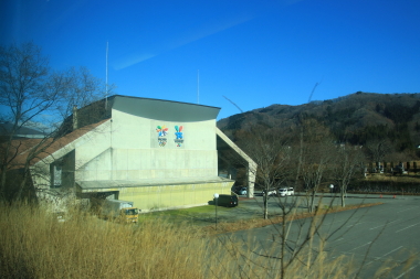 オリンピック施設が見えると白馬に到着
