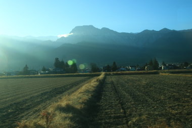 西日射す安曇野を進み