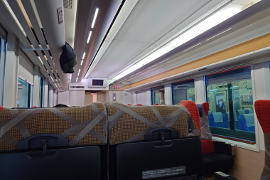 長野駅社員の方々に見送られて快速南小谷駅開業90周年号は長野駅を後にします。リゾートビューふるさと号の場合は長野−松本は結構空いているイメージがありますが、今日は列車名が変われば何とやらで長野駅からほぼ満席の状態になっています。特に今日は団体枠が多く乗車した1号車も半分近くが団体枠です。2号車は多分、車椅子席を除いた全ての席が団体枠かと思われます。