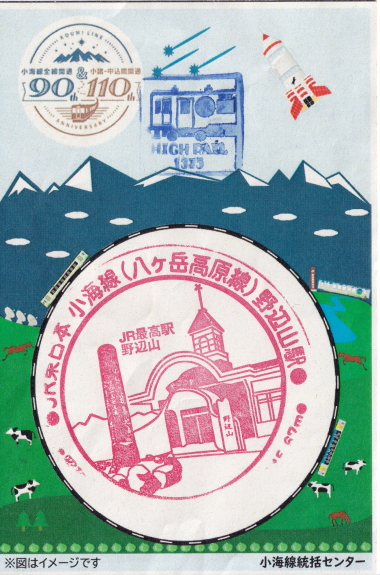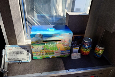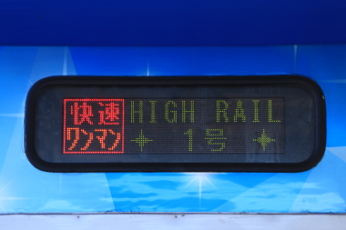 快速HIGH RAIL号では、ただいま車内に設置されたレターボックス(ポスト)の葉書を投函すると「快速HIGH RAIL」をデザインした小型記念印が消印として押されます。(さらに裏面には赤い日付入りオリジナルスタンプが押されます)
