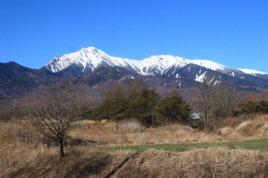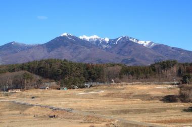 冬季の乗車でしたので車窓は少し寂しいのですが、晴天に恵まれ冬空に映える八ヶ岳や浅間山を車窓から見ることができました。 |