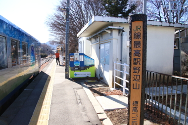 野辺山駅では少々停車します。夏場ならソフトクリームを食べに行きますが、さすがにこの気温では食べる気も無く駅周辺を歩くだけです。