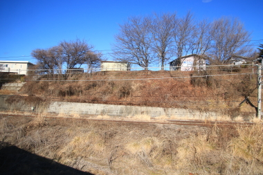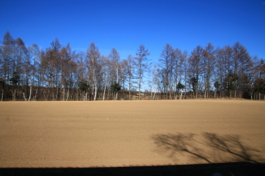 | トンネルを抜けてしばらくすると列車は減速して白竜の滝が見えるポイントに差し掛かります。こちら毎回通る度に思うのですが、車窓から滝を見るのが木々が生長して結構難しいです。今は冬なのでそれなりに見ることができますが、夏場は木々の葉でほとんど見ることができません。列車は勾配が続く木々の間を抜けて視界が開けてくると清里に停車します。清里での停車時間は僅かですぐに発車します。清里を列車は、冬の林を抜けて大門川を渡り長野県に入ると視界が開けすぐに「JR最高地点」を通過します。夏場は大勢の人で賑わうこの場所も冬の今日は人でも多くありません。列車は、何も植えられていない高原野菜の畑の中を進みます。車窓ではやや後方になりますが、甲斐駒ヶ岳も冬空に映えてしっかりと見ることができます。車窓が高原野菜の畑から集落に変わるとJR最高地点駅の野辺山駅に停車します。 |