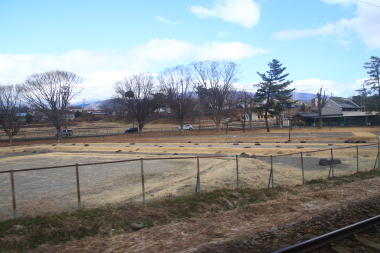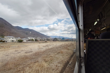 小諸を出た列車は、往路とは違い臨時普通列車の扱いで各駅に停車してゆきます。そのため、各駅から少なからず乗ってくる方がいます。 車窓の方は、天気は晴れでも浅間山は見ることができず少し残念でした。帰路も、車内放送で115系S1編成とS9編成の解説が行なわれました。信濃国分寺を出ると北陸新幹線の高架が近づき終点の上田に到着します。