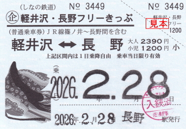 軽井沢・長野フリーきっぷ(表) |