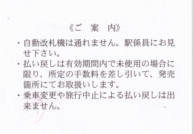 軽井沢・長野フリーきっぷ(裏) |